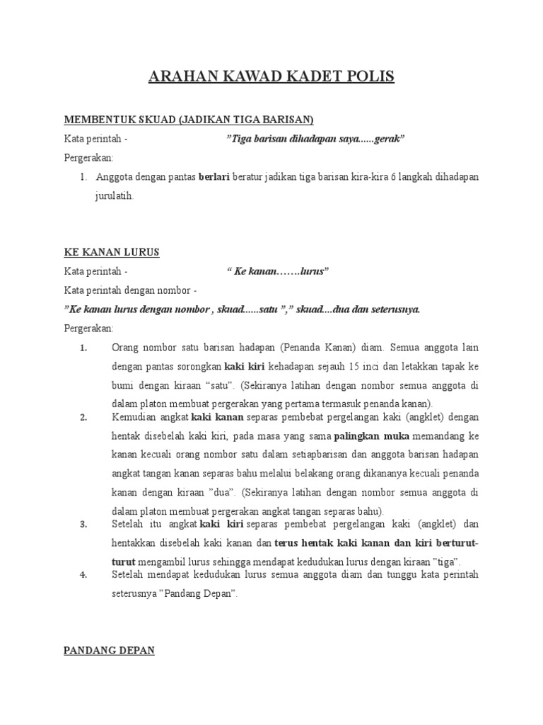 Arahan Kawad Kadet Polis from imgv2-1-f.scribdassets.com Aktiviti latihan intensif kawad kaki yang dilaksanakan ini mampu meningkatkan teknik kawad kaki pasukan yang akan bertanding tidak lama lagi. Pertandingan kawad kaki kor kadet polis peringkat negeri terengganu 2019 kemaman lelaki. Kawad kaki kadet polis smk taman melawati 2012. Kor kadet polis maahad ahmadi tanah merah. Kadet polis sm ken hwa,smk gunsanad.sfx. Johan kawad kaki kadet polis smk sri permata 2017. Kes buli di smk guntong dalam pemerhatian polis. Pertandaingan kawat kaki kor kadet polis peringkat negeri 130610.