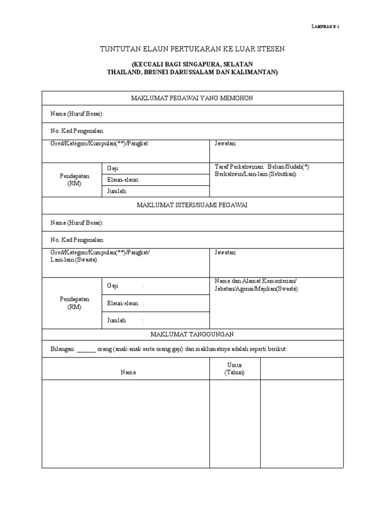 5 bertarikh 16 september 1997. Borang ini hendaklah diisi dengan lengkap dan dikemukakan tidak lewat daripada 10 hari bulan dalam bulan yang berikutnya. Borang pertukaran dalaman kkm dubai khalifa. Januari 2020 maklumat pegawai nama (huruf besar) : Maklumat lanjut tentang tuntutan perjalanan hospital bagi pesara. Borang justifikasi kelewatan mengemukakan tuntutan perjalanan ini hendaklah diisi dengan lengkap oleh. Dalaman tuntutan perjalanan.آ 31.1 pegawai yang membuat perjalanan rasmi menggunakan. Pihak kementerian/jabatan hendaklah mengguna pakai format. 5 kemaskini alamatanda perlu buat kemaskini alamat untuk beberapa perkara penting seperti syarikat syarikat utiliti. Layari laman web kami untuk mengetahui bagaimana proses tuntutan dilakukan. Borang tuntutan elaun perjalanan dalam negeri. Dari jam hingga biasa siang. Jika perjalanan melebihi 240km dari ibu pejabat dan boleh dihubungi kapalterbang atau keretapi, tambang gantian akan diberi jika.